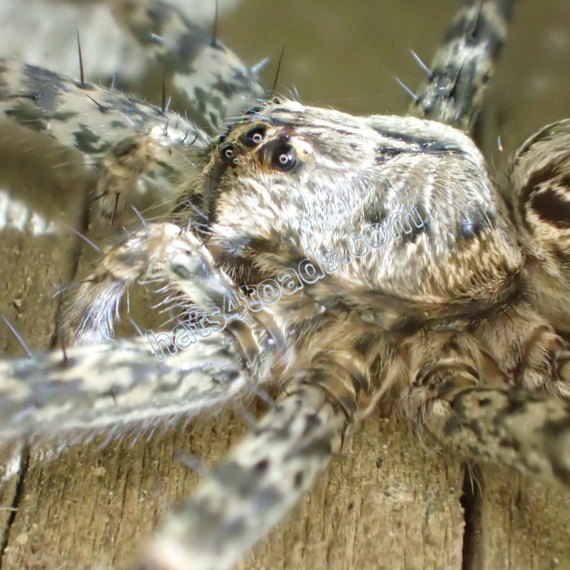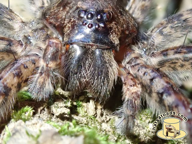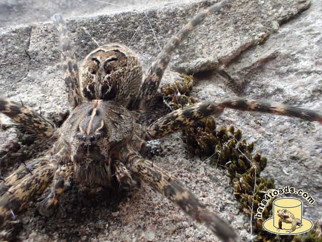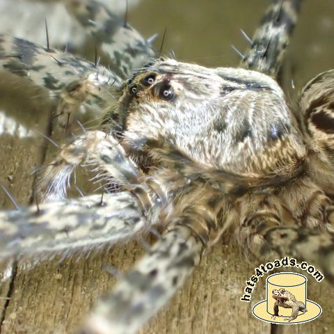I don't like spiders very much, but I like crawly spiders much much better than web spiders. The wolf spiders here are only about an inch long.