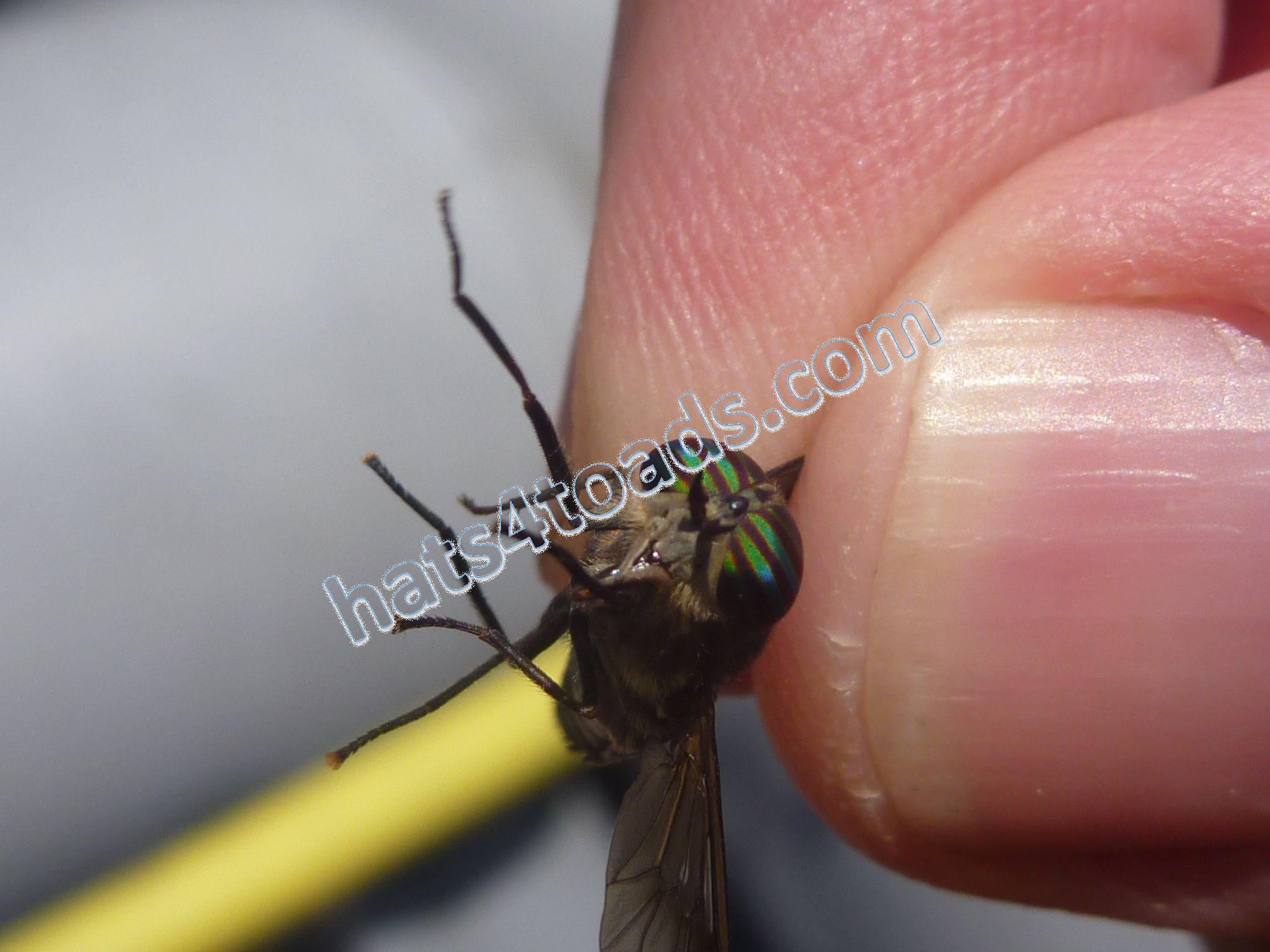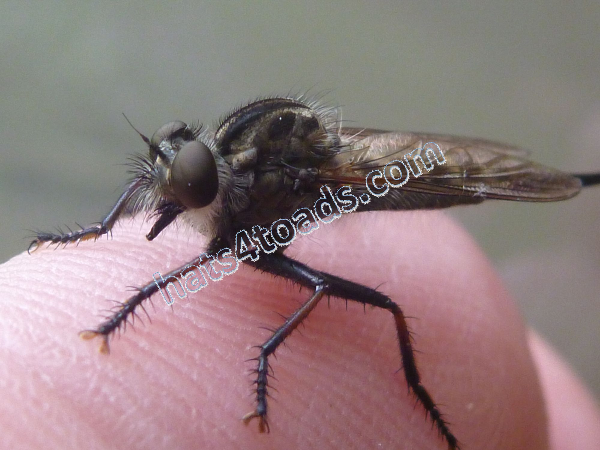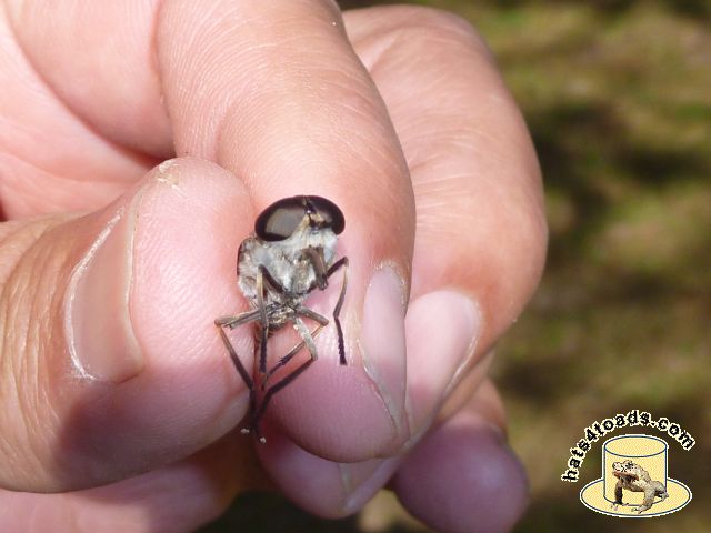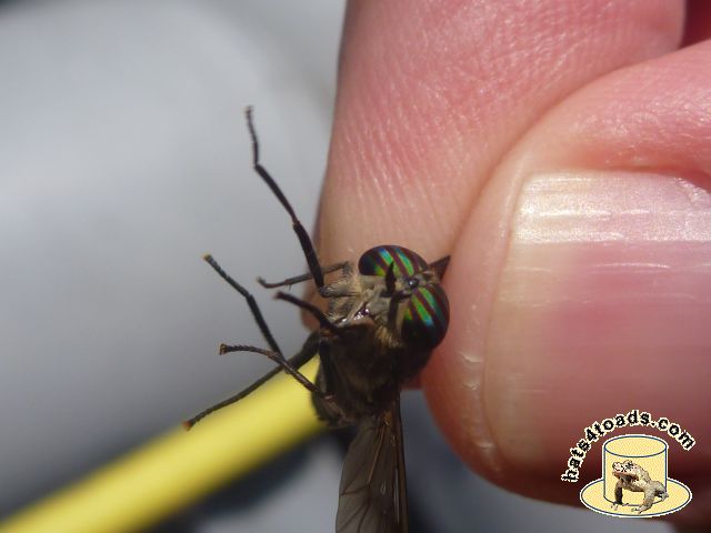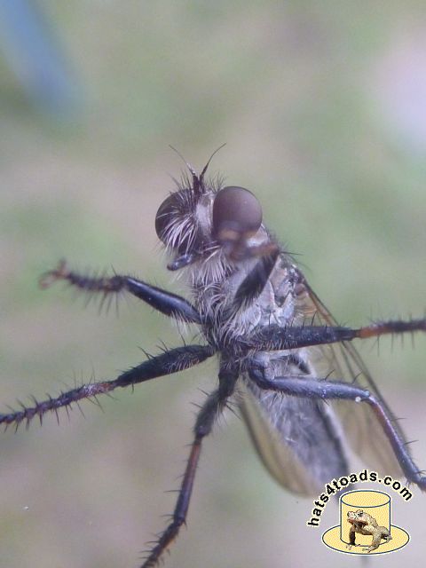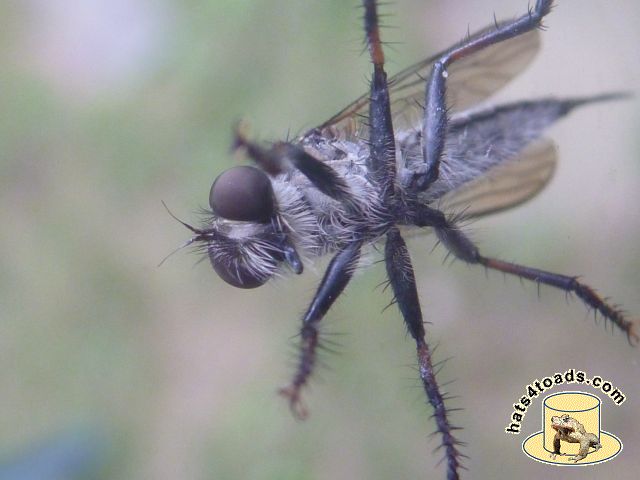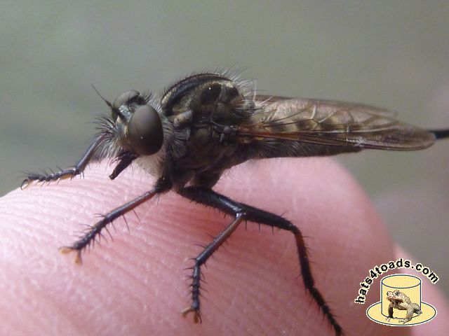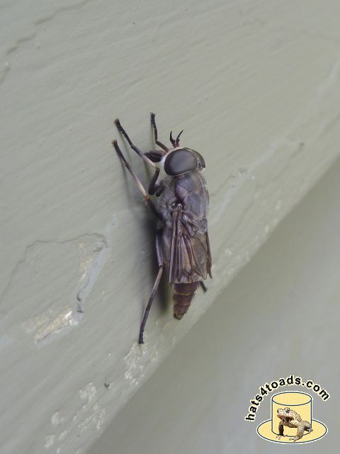 Horseflies are very fond of me. Sometimes I chastise them and let them go, but often they end up dead and/or fed to sunfish. Robber flies are neat - calm enough that they can be photographed.